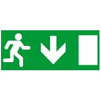 Информационная табличка - для автономных эвакуационных светильников - дверь на выход вниз - 310х112 мм