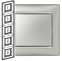 Наименование: Рамка - Valena - 5 постов - вертикальный монтаж - алюминий/серебряный штрих