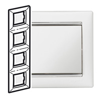 Наименование: Рамка - Valena - 4 поста - вертикальный монтаж - белый/серебряный штрих
