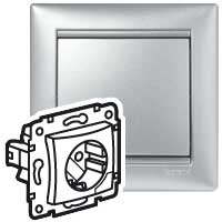 Силовая розетка - Valena - 2К+3 - с механической системой выталкивания вилки - 10/16 А - 230/250 В~ - алюминий