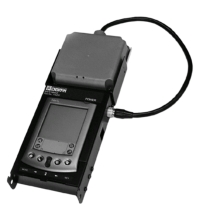 Portable read / write device Reading and writing of data carriers Large display with touchscreen Operation via PALM Sturdy metallic housing 2 LEDs as function indicators Battery operation Charger included in delivery package Software and strap included